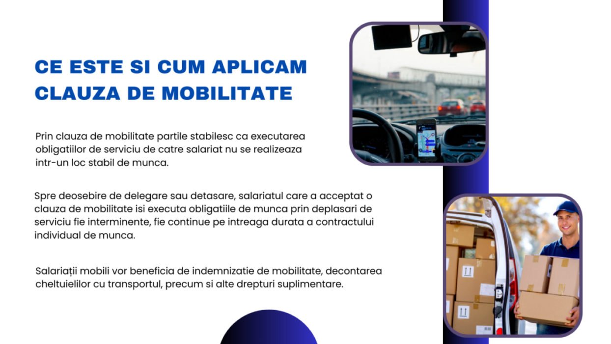 Ce este si cum aplicam clauza de mobilitate Clauza de mobilitate este o prevedere contractuala care stabileste ca, luand in considerare specificul muncii, executarea obligatiilor…